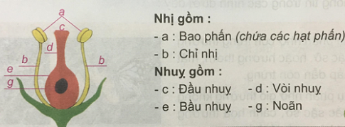 c. Chỉ và nói với bạn tên các bộ phận sinh sản của bông hoa.