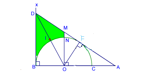 Cho nửa đường tròn (O; R) đường kính BC. Lấy điểm A trên tia đối của . tia CB. Kẻ tiếp tuyến AF của nửa đường tròn (O) ( với F là tiếp điểm), tia AF cắt tiếp tuyến Bx của nửa đường tròn tại D. Biết AF =