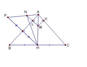 Dựng điểm P là đối xứng của điểm H qua AB.