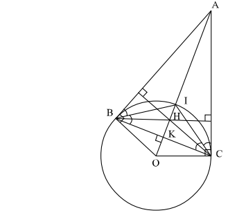 Cho đường tròn tâm O và điểm A nằm ngoài đường tròn . Từ A kẻ hai tiếp tuyến AB , AC với đường tròn ( B, C là hai tiếp điểm ).