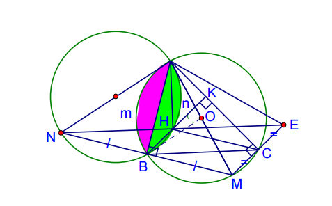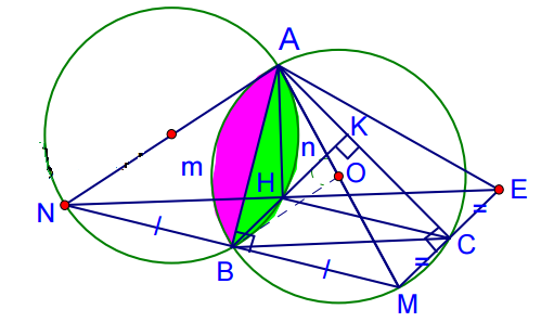 Vậy diện tích phần chung của đưòng tròn (O) và đường tròn ngoại tiếp tứ giác AHBN là