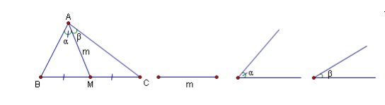 Dựng tam giác ABC với trung tuyến AM có độ dài bằng một đoạn thẳng m cho trước ,và các góc MAB và MAC lần lượt bằng những góc
