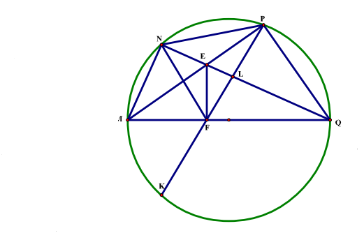 Cho tứ giác ANPQ nội tiếp (O) đường kính AQ .Hai đường chéo AP và NQ cắt nhau tại E . Gọi F là điểm thuộc AQ sao cho EF vuông góc với AQ .Đường thẳng PF cắt (O) tại điểm thứ hai là K .NQ và PF cắt nhau tại L .Chứng minh rằng :