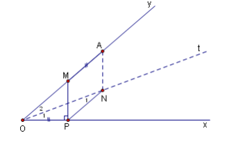 Kẻ tia phân giác Ot của góc xOy và từ A ,kẻ đường thẳng vuông góc với Ox , cắt Ot tại N .