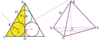 là tứ diện đều cạnh bằng 2r. Gọi C là trọng tâm tam giác $I_{1}I_{2}I_{3}$ $ \Rightarrow I_{1}C=\frac{2 r \sqrt{3}}{3}$.