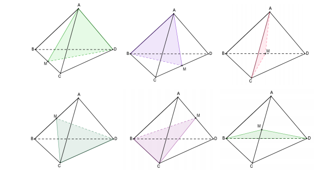 Hình tứ diện đều có 6 mặt đối xứng (Hình vẽ)$