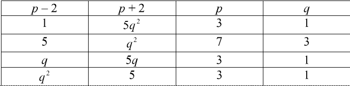 Do 0 < p - 2 < p + 2 và q là số nguyên tố => p - 2 chỉ nhận bộ giá trị ![]()
