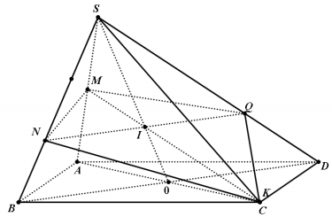 di động đi qua các điểm M, N và cắt các cạnh SC, SD lần lượt tại hai điểm phân biệt K, Q nên ta có: