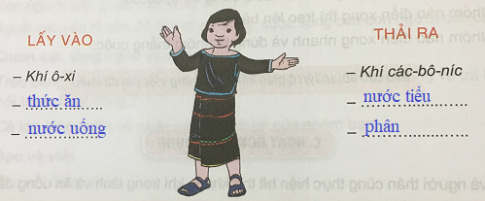 b. Lựa chọn các từ, cụm từ: thức ăn, nước uống, phân, nước tiểu để điền vào chỗ chấm (...) trong sơ đồ trên cho phù hợp