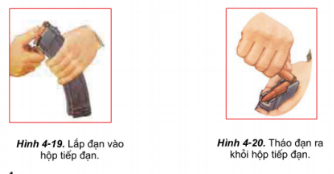 - Tay trái giữ hộp tiếp đạn, sống hộp tiếp đạn quay sang trái.