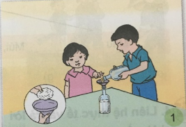 - Rót từ từ từng chai nước vào từng phễu (hình 1)