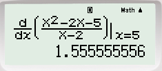 Cụ thể với bài này: Nhấn tổ hợp SHIFT+ tích phân để tính đạo hàm tại một điểm.