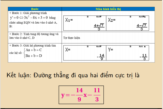 bằng chức năng EQN và lưu vào ô nhớ A, B. - Bước 2: Tính tung độ tương ứng bằng cách nhập hàm và nhấn CALC.