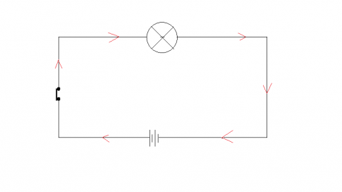 c, Vẽ sơ đồ mạch điện của đèn pin kèm theo mũi tên kí hiệu dòng điện chạy trong mạch điện khi công tắc đóng.