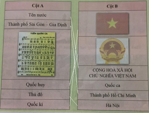 Nối các thông tin ở cột A sao cho phù hợp với các thông tin ở cột B về các quyết định của kì họp thứ nhất Quôc hội khóa VI (năm 1976).