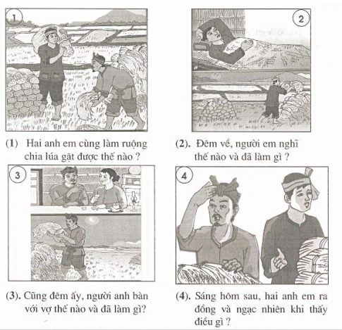 Câu 4: a) Dựa vào tranh và câu hỏi gợi ý, hãy ghi lại cốt truyện Hai anh em: