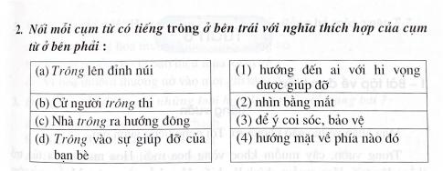 2. Nối mỗi cụm từ có tiếng trông ở bên trái với nghĩa thích hợp của cụm từ ở bên phải:
