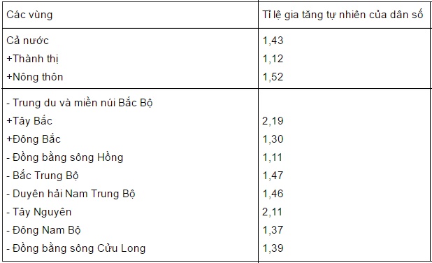 - Tây Nguyên là khu vực có mật độ dân số trung bình tăng nhiều nhất từ 45 lên 84 người/km2 , tăng 1,87 lần (do các chương trình di dân của Đảng và Nhà nước lên Tây Nguyên để xây dựng và phát triển các vùng kinh tế mới).
