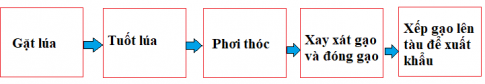 c. Sắp xếp các cụm từ trên vào sơ đồ theo trật tự các bước trong quy trình thu hoạch và chế biến gạo xuất khẩu