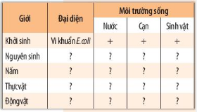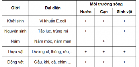 - Hãy xác định môi trường sống của đại diện các sinh vật thuộc năm giới bằng cách hoàn thành bảng theo mẫu sau: