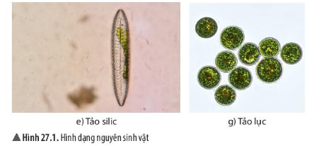 - Dựa trên hình dạng của các nguyên sinh vật trong hình 27.1, em hãy xác định tên của các sinh vật quan sát được trong nước ao, hồ ở Bài 21