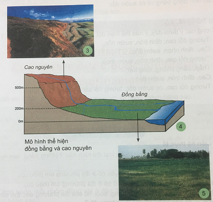 - Quan sát hình 3, 4, 5 so sánh độ cao giữa đồng bằng và cao nguyên?