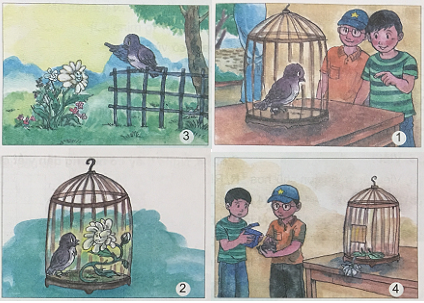 Sắp xếp lại thứ tự các tranh theo nội dung câu chuyện Chim sơn ca và bông cúc trắng