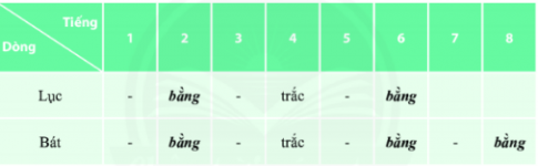 - Về thanh điệu: Phối hợp thanh điệu giữa các tiếng trong một cặp câu lục bát được thể hiện như sau: