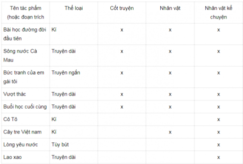 STT | Tên tác phẩm hoặc đoạn trích | Tác giả | Thể loại | Tóm tắt nội dung, đại ý |