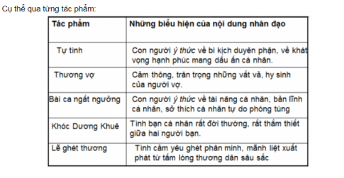 Chủ nghĩa nhân đạo giai đoạn từ TK XVIII đến hết thế kỉ XIX xuất hiện một trào lưu nhân đạo chủ nghĩa bởi: các tác phẩm mang nội dung nhân đạo xuất hiện nhiều và đạt được thành tựu to lớn về nội dung và nghệ thuật: Truyện Kiều, Chinh phụ ngâm, Cung oán ngâm khúc, thơ của Hồ Xuân Hương ...