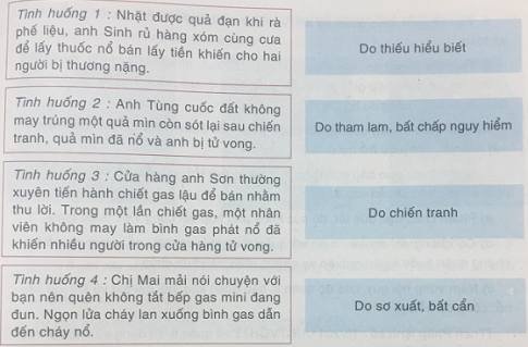 Xác định nguyên nhân của các tai nạn dưới đây bằng cách nối các tình huống với các ô cho phù hợp