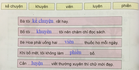 Thảo luận để cọn thẻ từ ghép vào chỗ trống ở từng bảng giấy để tạo thành câu: