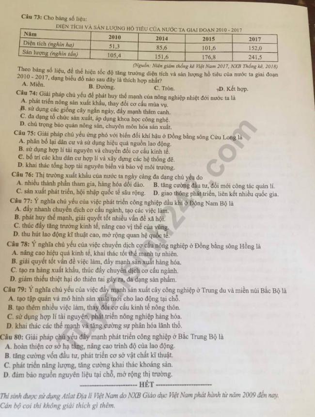 - Thi THPQG 2019: Đề thi và đáp án môn Địa lí mã đề 310