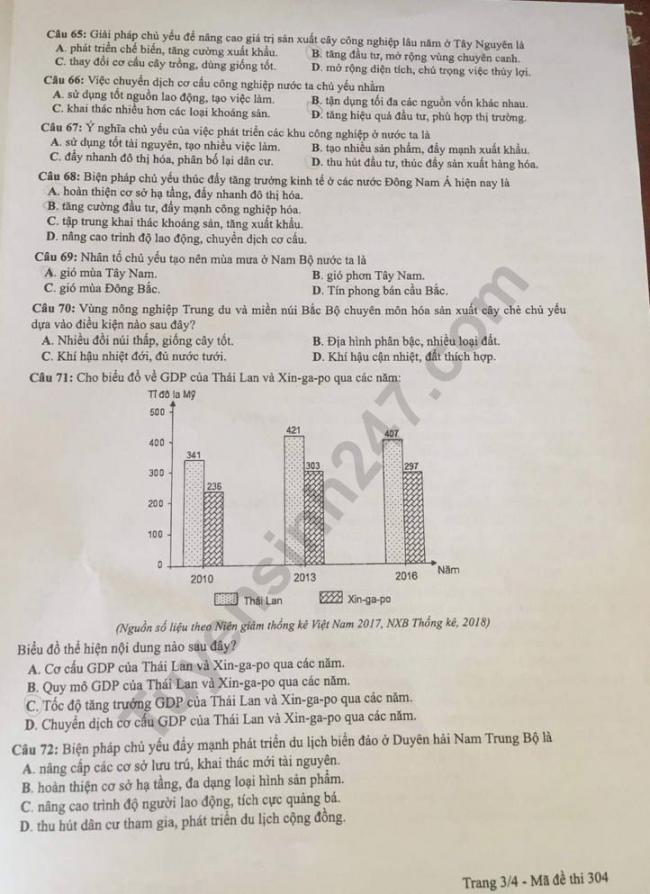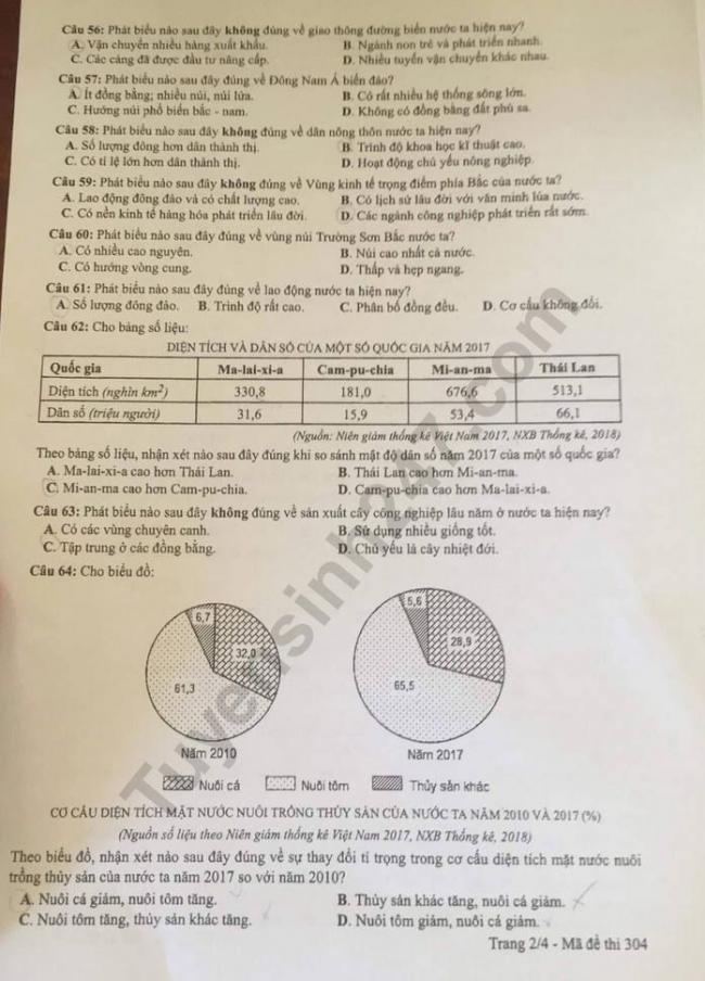 Thi THPQG 2019: Đề thi và đáp án môn Địa lí mã đề 304