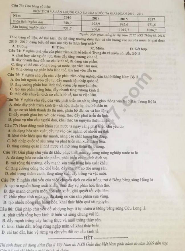 - Thi THPQG 2019: Đề thi và đáp án môn Địa lí mã đề 310