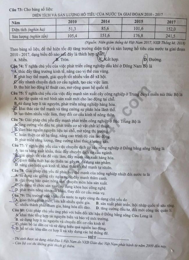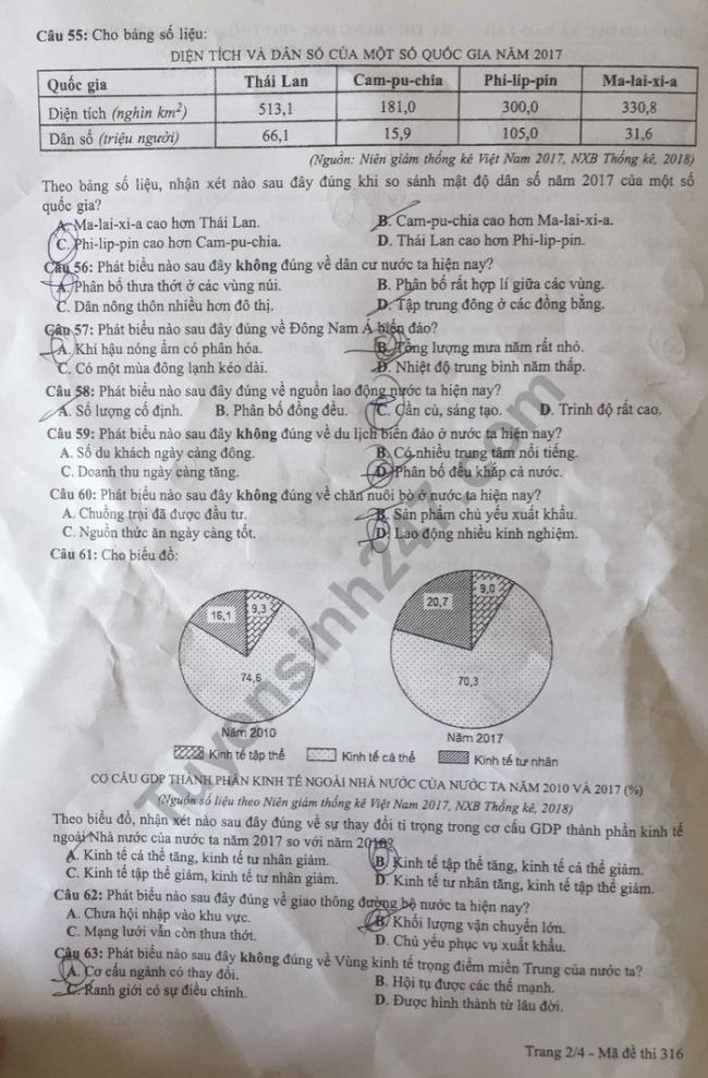 Thi THPQG 2019: Đề thi và đáp án môn Địa lí mã đề 316