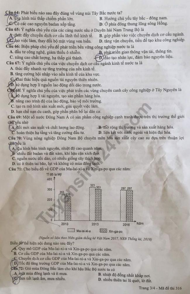 ĐỀ THI MÔN ĐỊA LÍ MÃ ĐỀ 316
