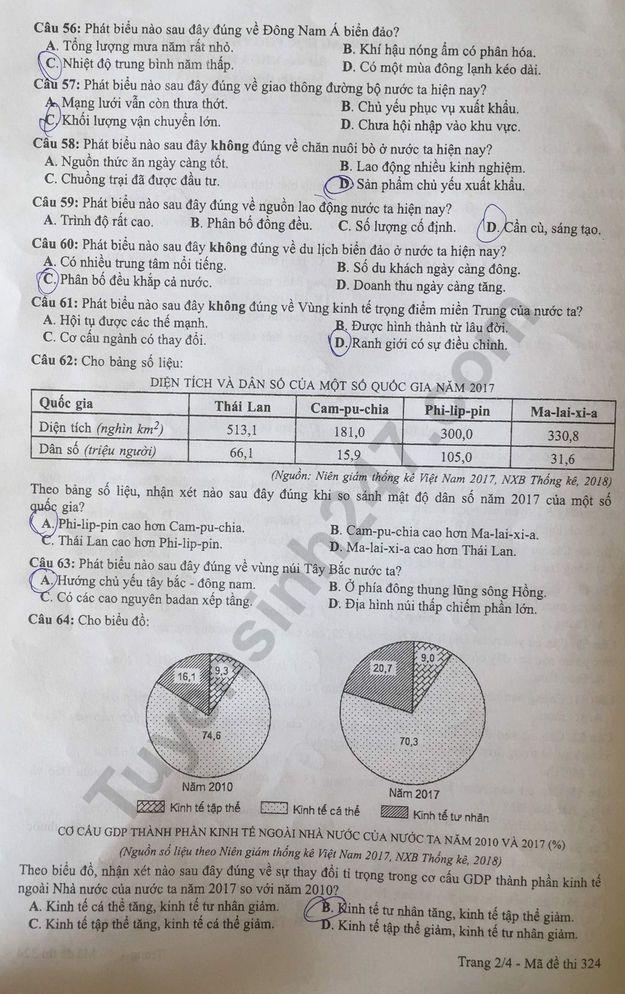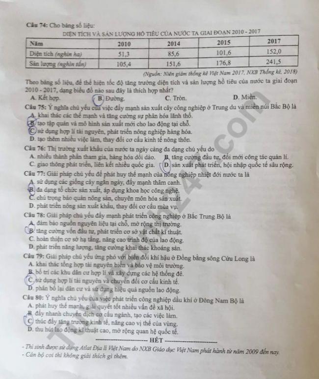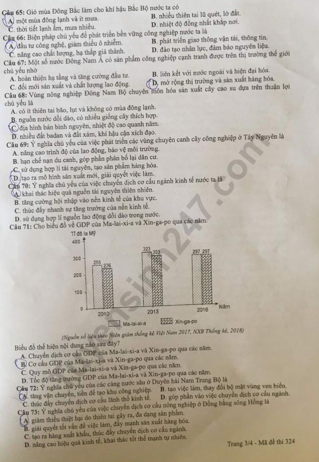 Thi THPQG 2019: Đề thi và đáp án môn Địa lí mã đề 324