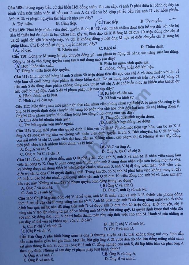 - Đáp án đề thi thử trắc nghiệm mới nhất môn GDCD kì thi THPT năm 2017, đề số 2