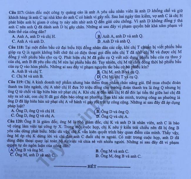 - Đề và đáp án môn Công dân mã đề 305 thi THPTQG 2017 – đáp án của bộ GD-ĐT