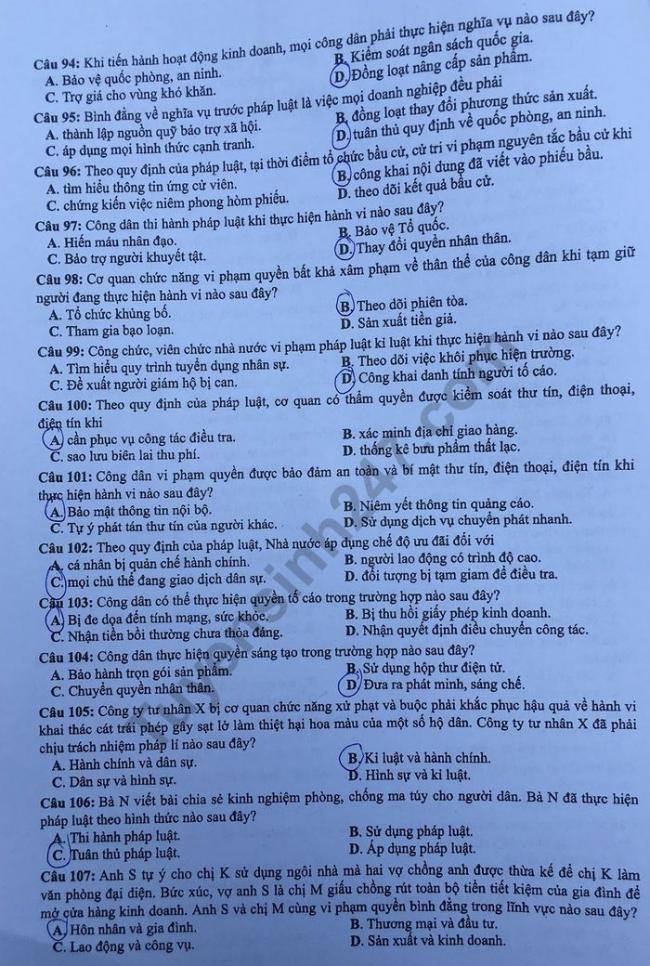 Cập nhật liên tục đề thi và đáp án môn GDCD kì thi THPT quốc gia năm 2019. Dưới đây, KhoaHoc sẽ gửi đến quý phụ huynh và học sinh đề thi và đáp án môn GDCD mã đề 304. Mời quý bạn đọc cùng tham khảo.