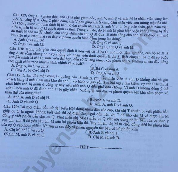 - Đề và đáp án môn Công dân mã đề 305 thi THPTQG 2017 – đáp án của bộ GD-ĐT