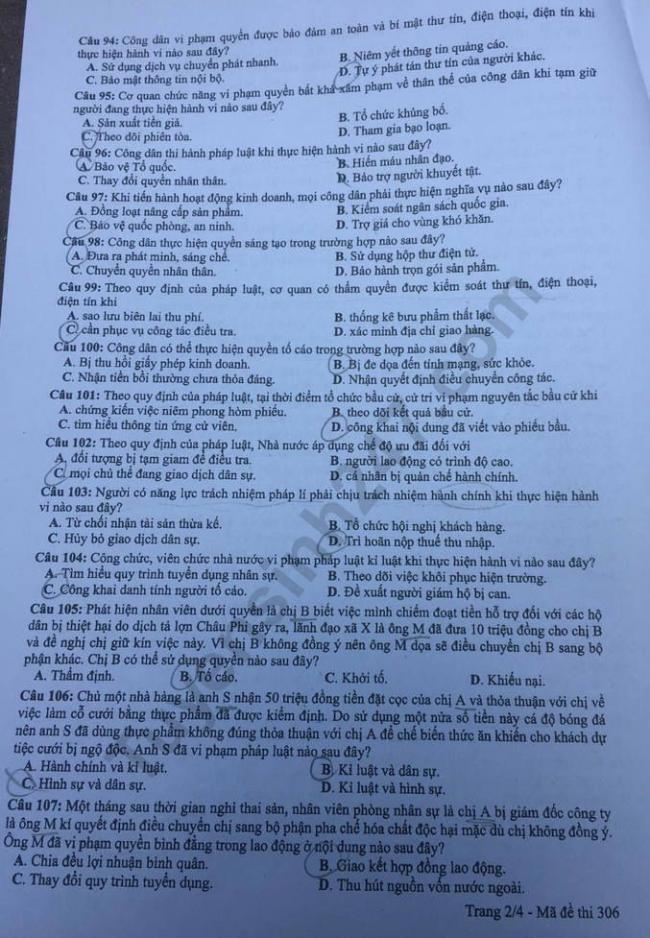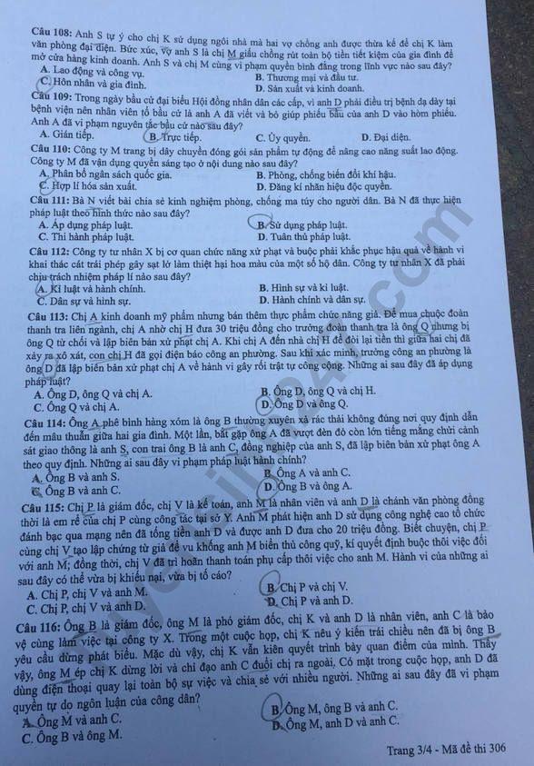 ĐỀ THI MÔN GDCD MÃ ĐỀ 306