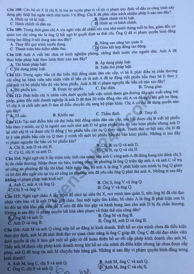 - Đề thi và đáp án môn GDCD: Mã đề 311