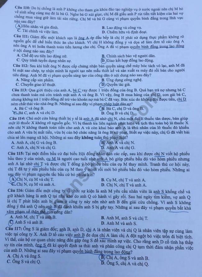 - Đề thi và đáp án môn GDCD: Mã đề 301