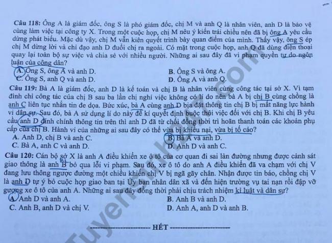 - Đề thi và đáp án môn GDCD: Mã đề 305