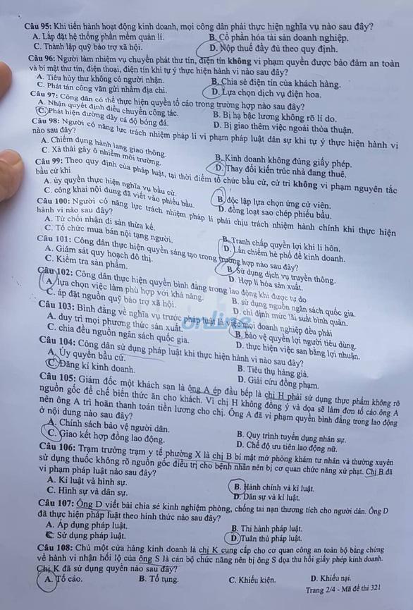 - Đề thi và đáp án môn GDCD: Mã đề 321