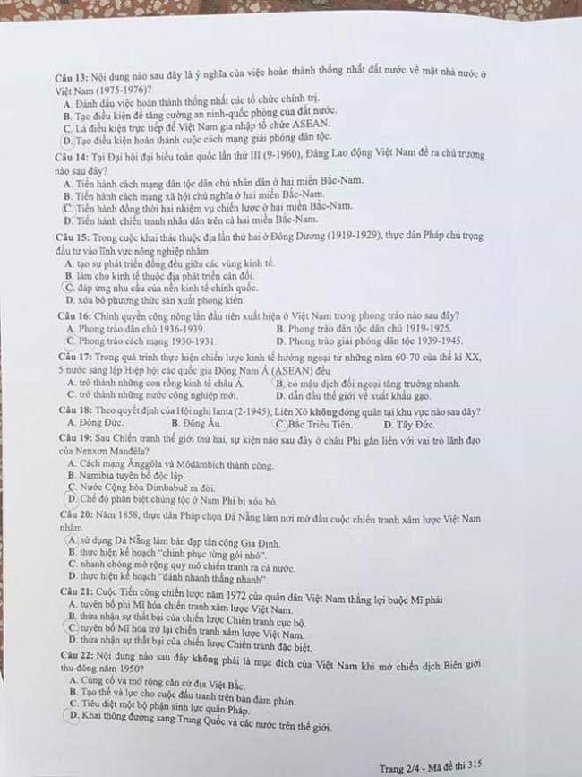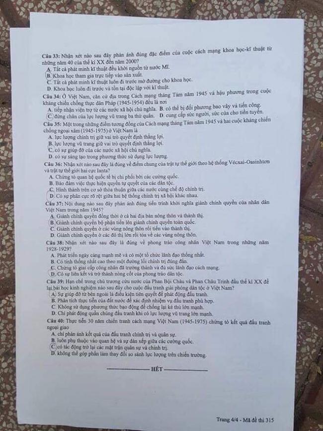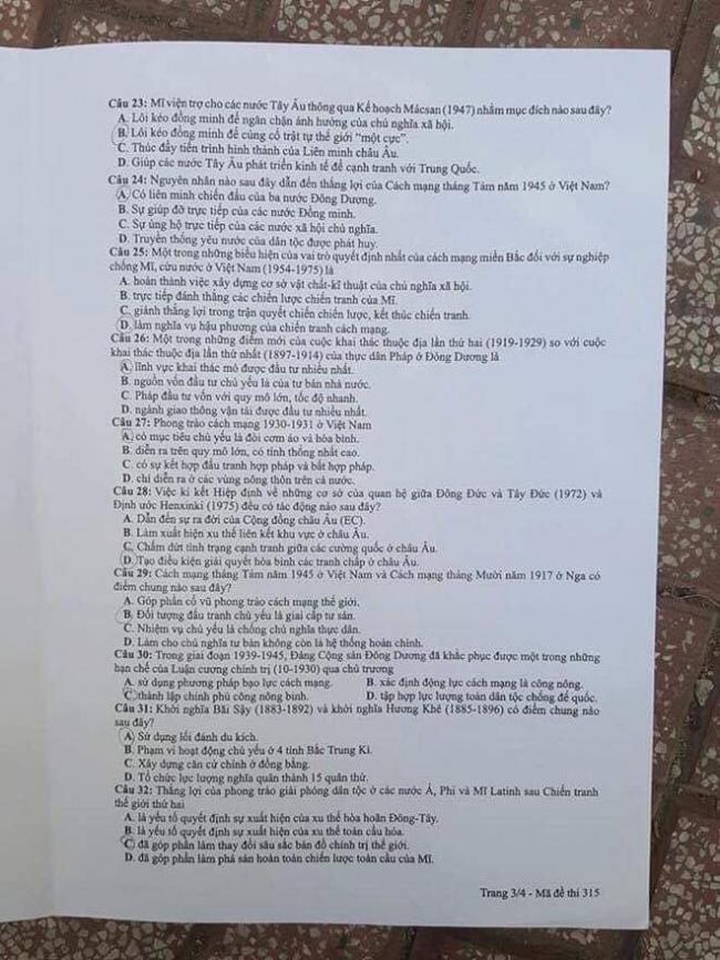 ĐỀ THI MÔN LỊCH SỬ MÃ ĐỀ 315