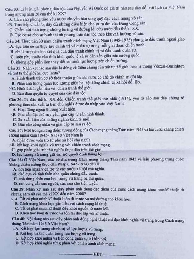 - Thi THPQG 2020: Đề thi và đáp án môn Lịch sử mã đề 321