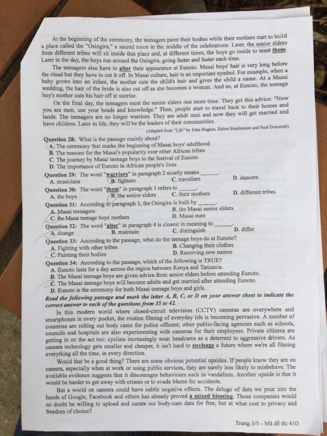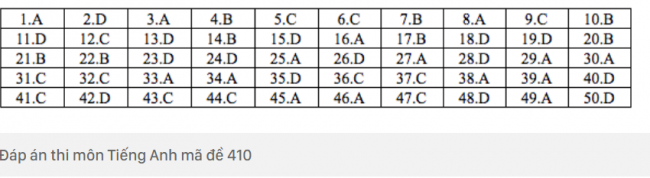 - Đề thi và đáp án môn Ngoại ngữ Mã đề 410